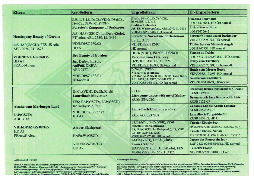 Am 17. Aug. 2015 brachte Boness 3 Hündinnen und 3 Rüden zur Welt.